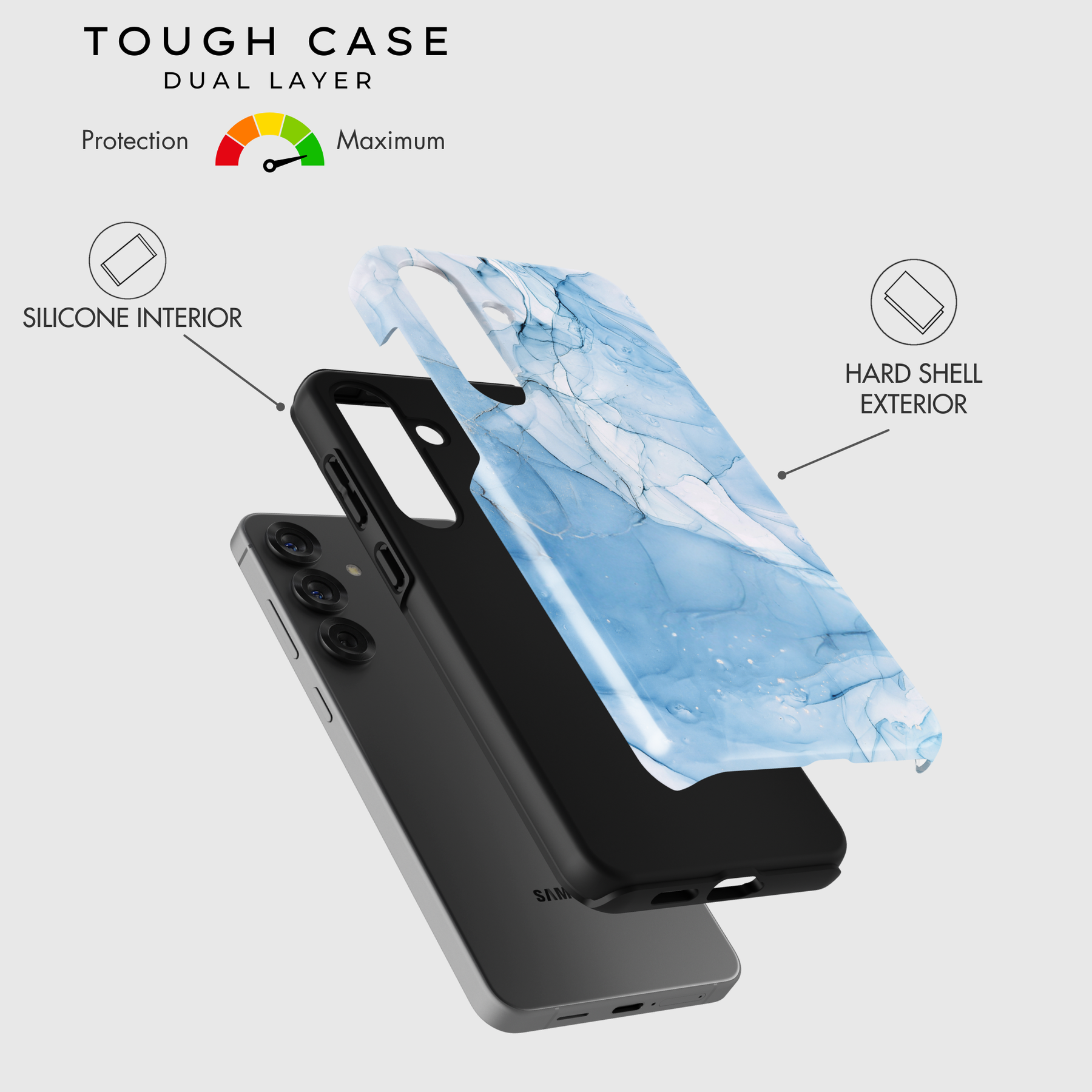 Tough Case: Provides superior defense with dual-layered protection (soft silicone interior + hard shell exterior), safeguarding both the screen and camera. Perfect for those seeking maximum durability while maintaining a fashionable look.