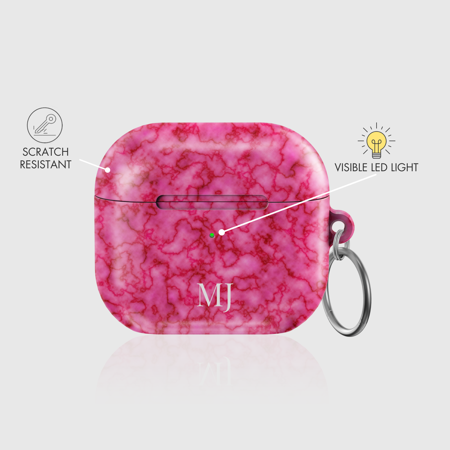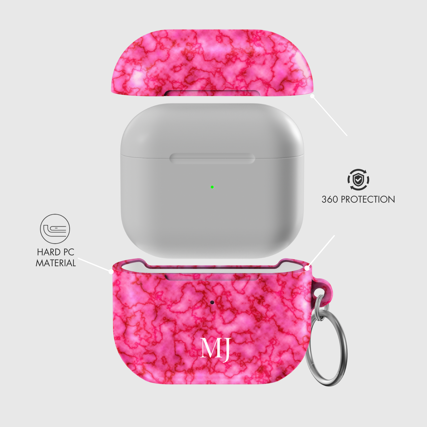 • Each case includes a stylish silver circle ring carabiner for easy attachment to personal items.