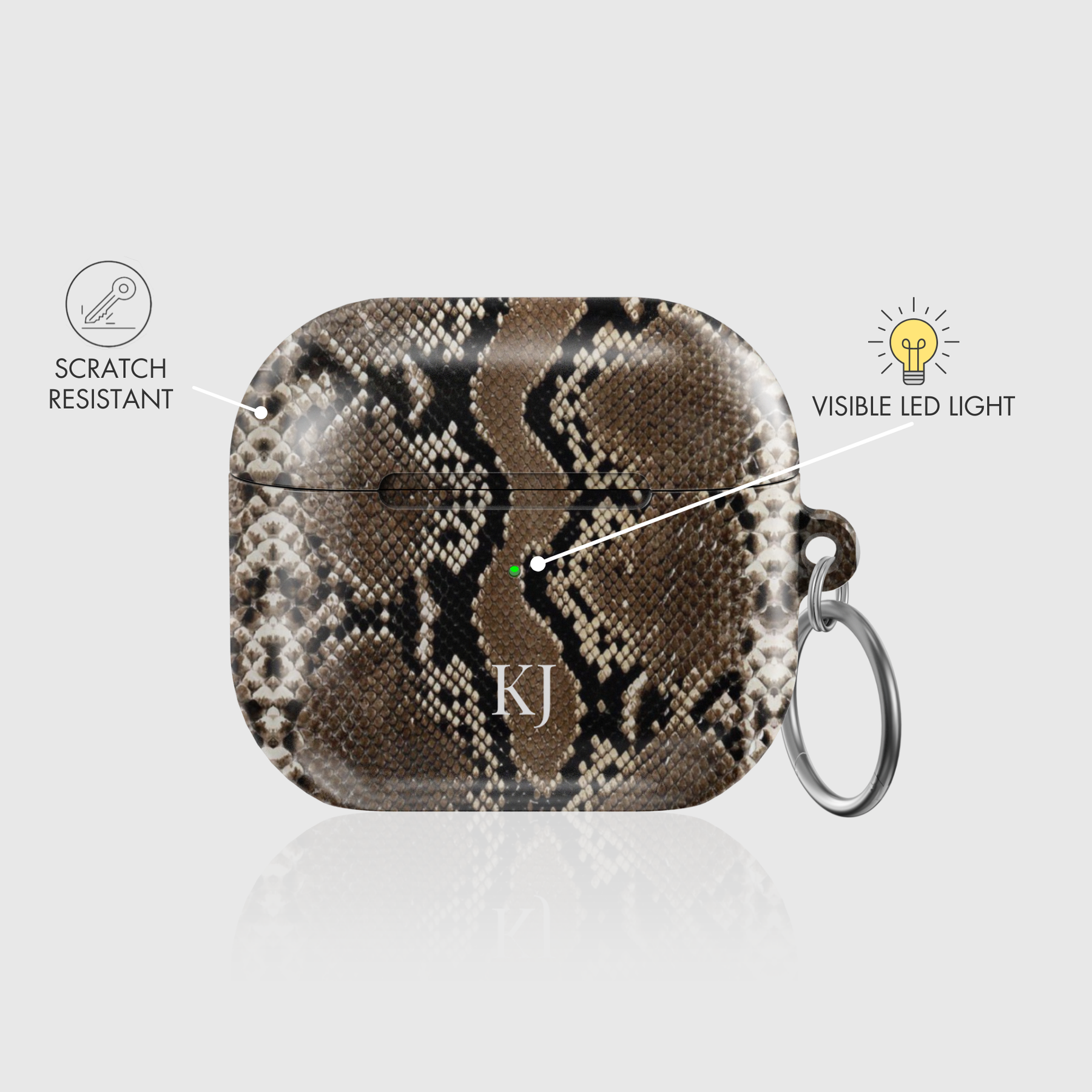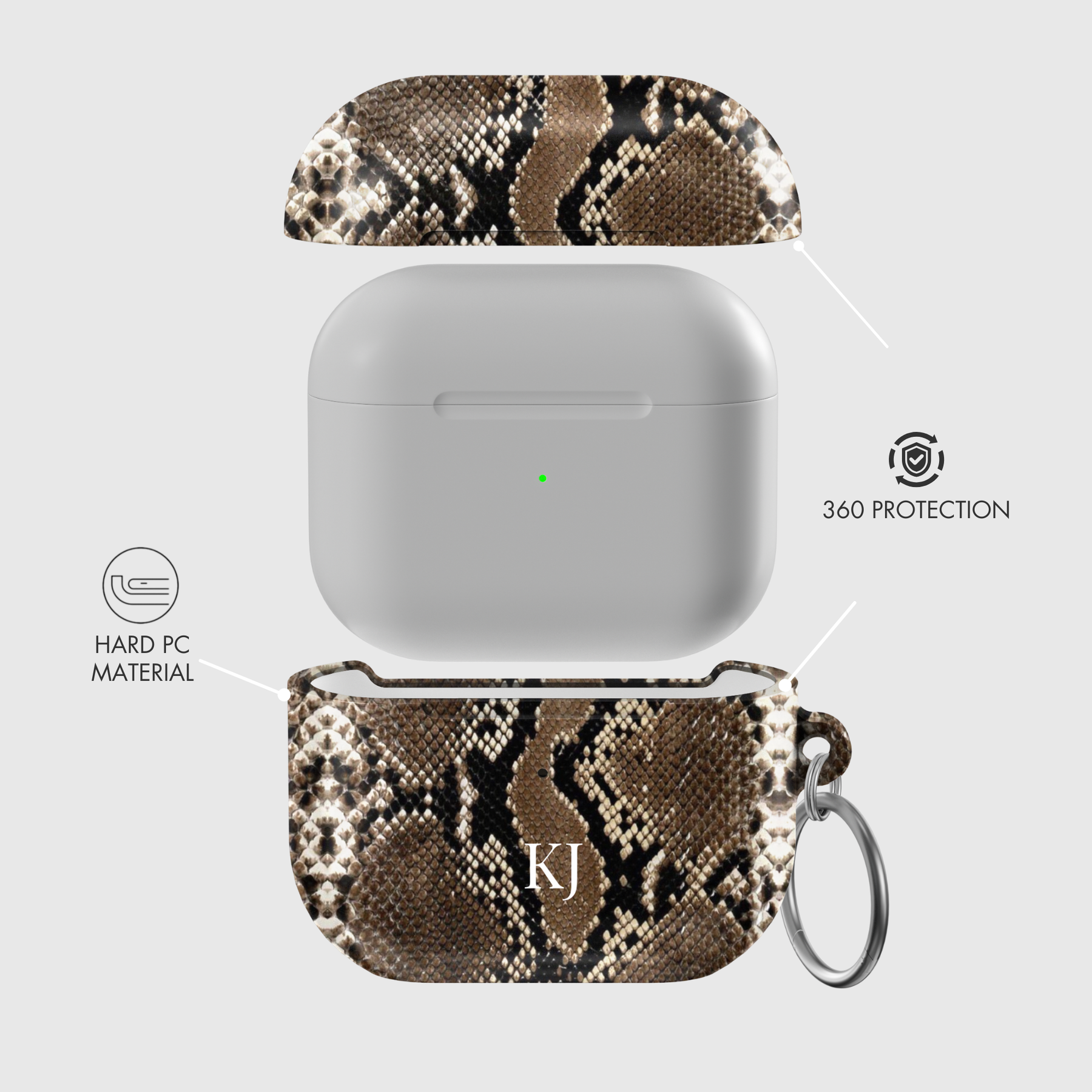 • Each case includes a stylish silver circle ring carabiner for easy attachment to personal items.
