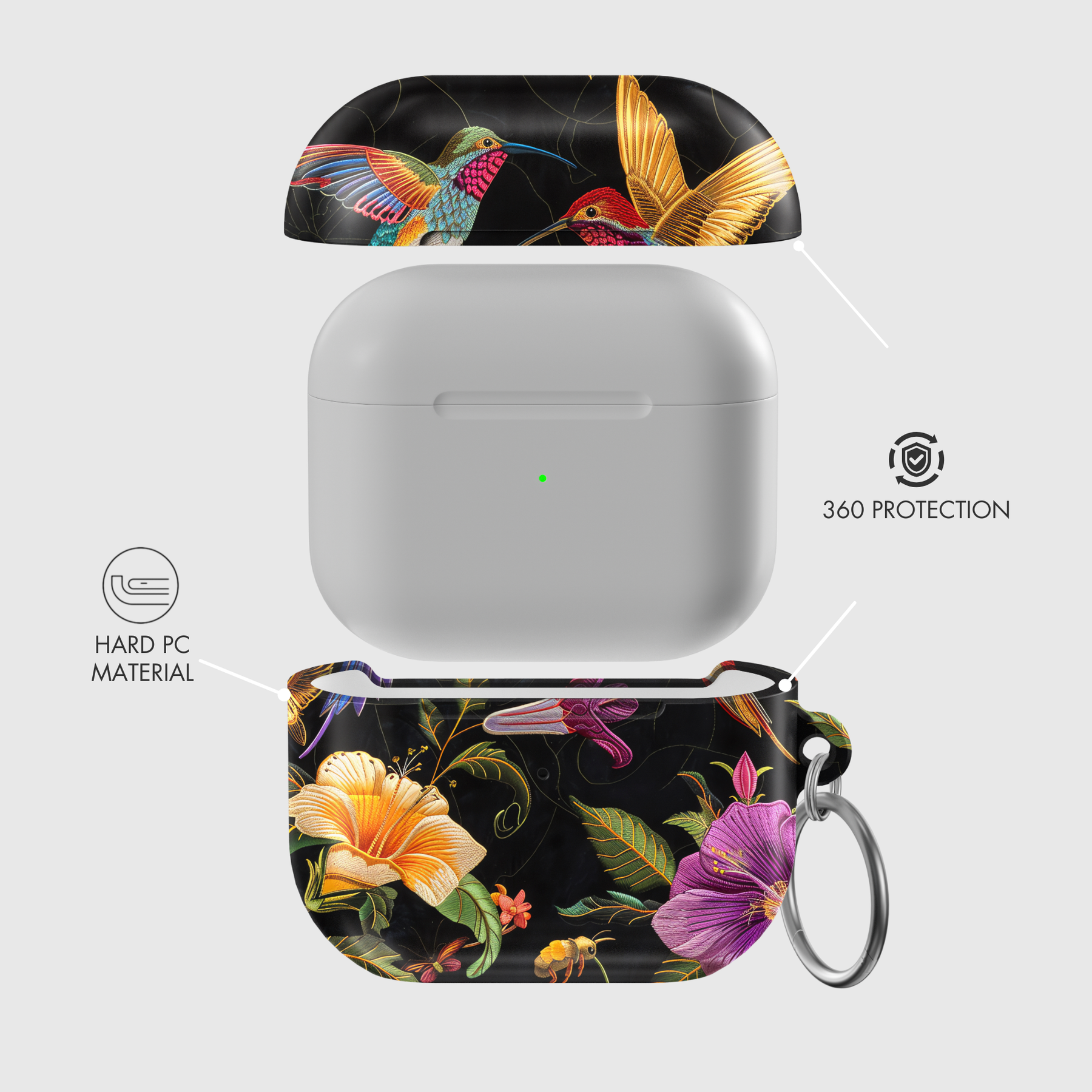 Product Overview: Discover the perfect blend of style and functionality with our AirPods and AirPods Pro cases. Expertly designed in the USA, these cases showcase an all-encompassing 3D dye sublimation print covering the front, sides, and top lid. Crafted from premium, durable polycarbonate material, these cases offer complete protection against scratches, peels, and fading.