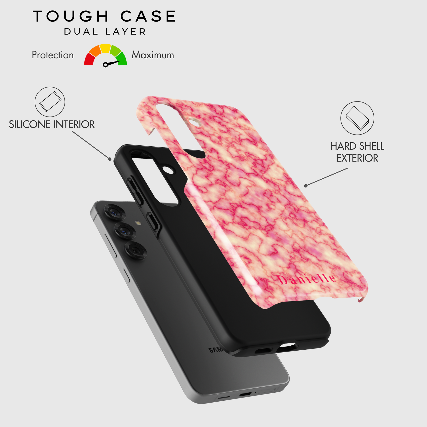 Tough Case: Provides superior defense with dual-layered protection (soft silicone interior + hard shell exterior), safeguarding both the screen and camera. Perfect for those seeking maximum durability while maintaining a fashionable look.