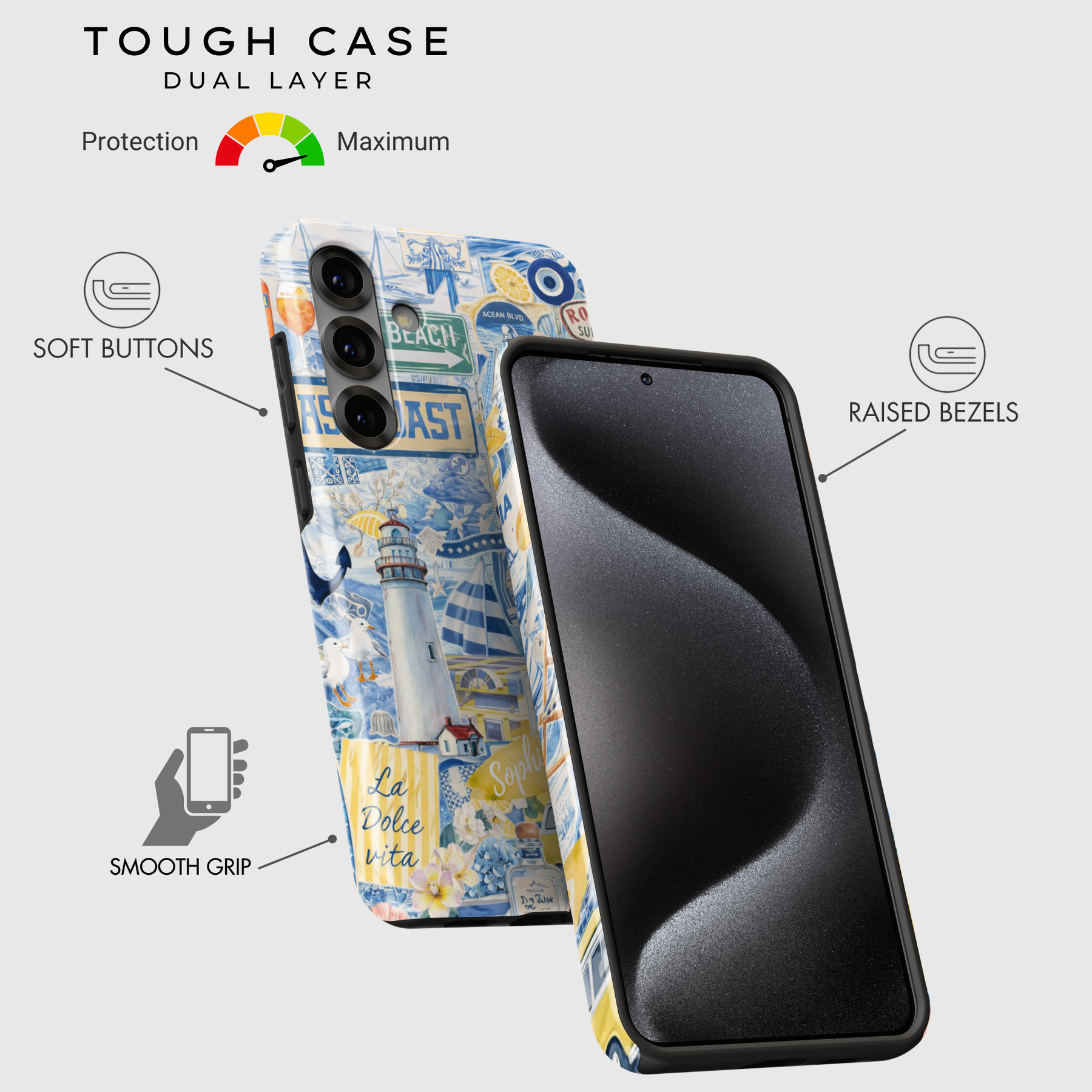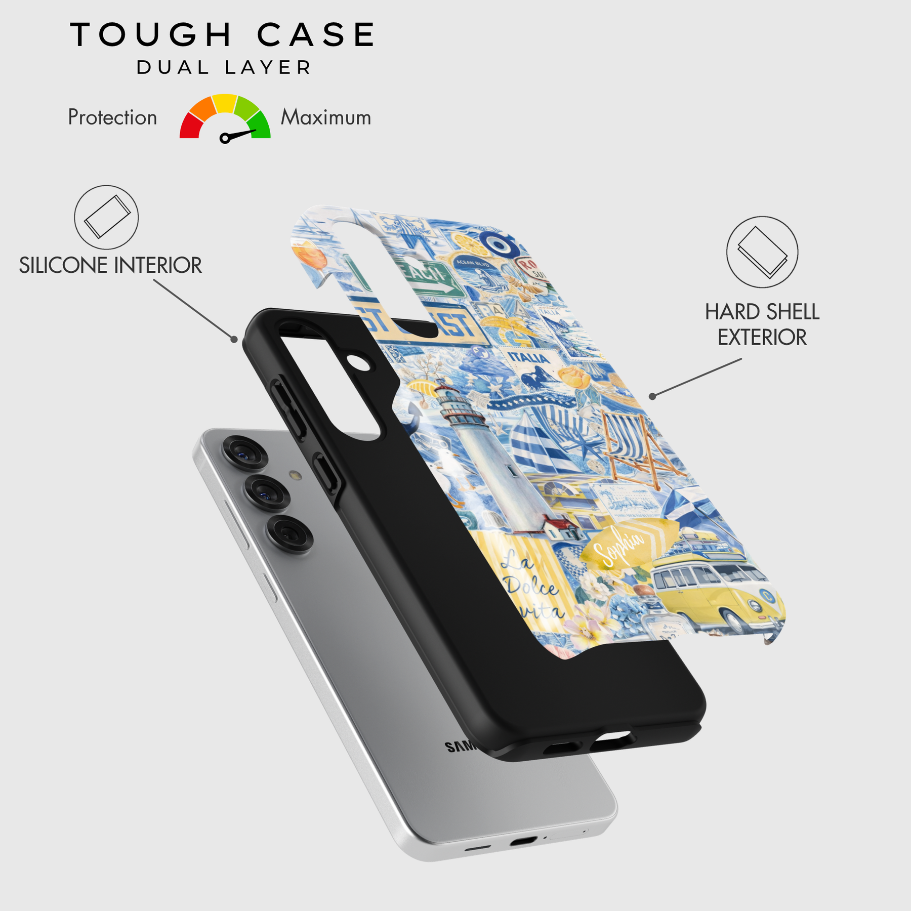 Tough Case: Provides superior defense with dual-layered protection (soft silicone interior + hard shell exterior), safeguarding both the screen and camera. Perfect for those seeking maximum durability while maintaining a fashionable look.