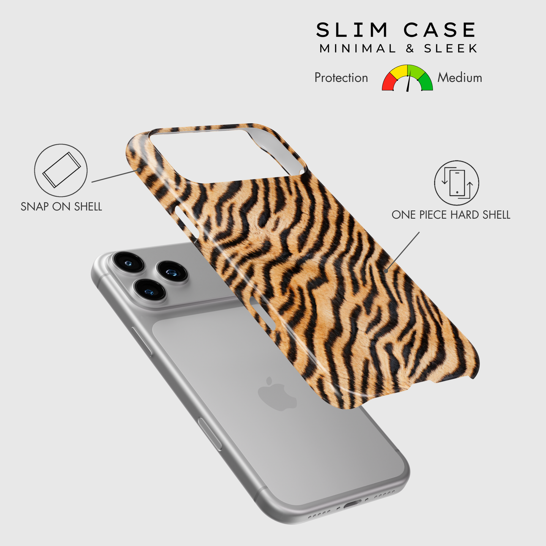 Slim Snap Case: Offers minimalist protection with a raised housing bezel to guard the camera lens. Ideal for those who prioritize style and prefer lightweight, sleek cases without bulky protection.